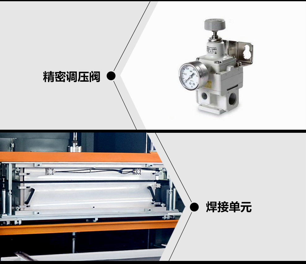 ☆ 塑膠托盤自動焊接機采用可編程控制器(PLC)和觸模屏人機界面來控制,各氣缸運動為氣壓推動,操作簡便、性能可靠、尺寸緊湊,提高生產(chǎn)效率和質量;