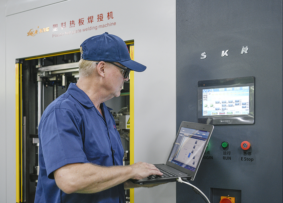 采用三層模板組合方式,整款產(chǎn)品模具一次性換模。操作簡單高效,1人即可完成。超聲波焊接機(jī)廠家南方力勁場景展示