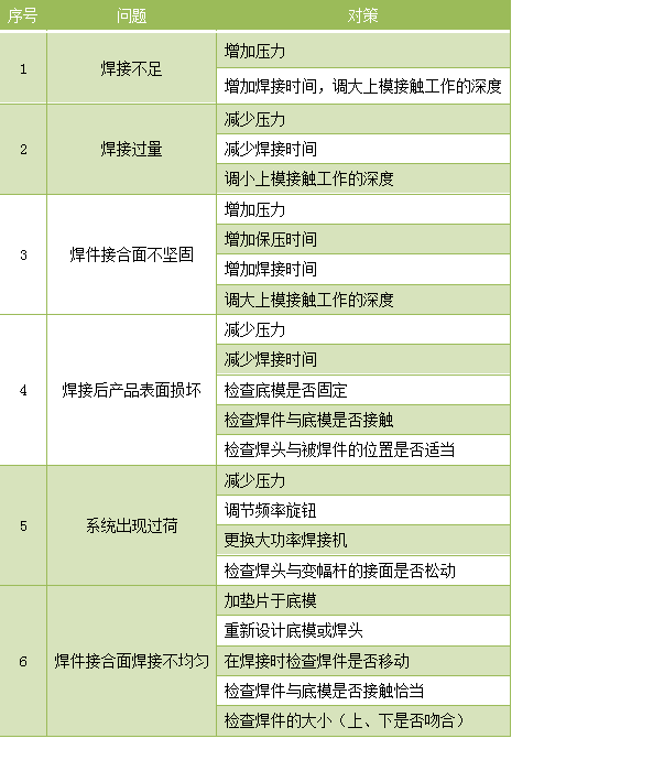 超聲波塑料焊接機(jī)常見焊接問題以及解決對策表