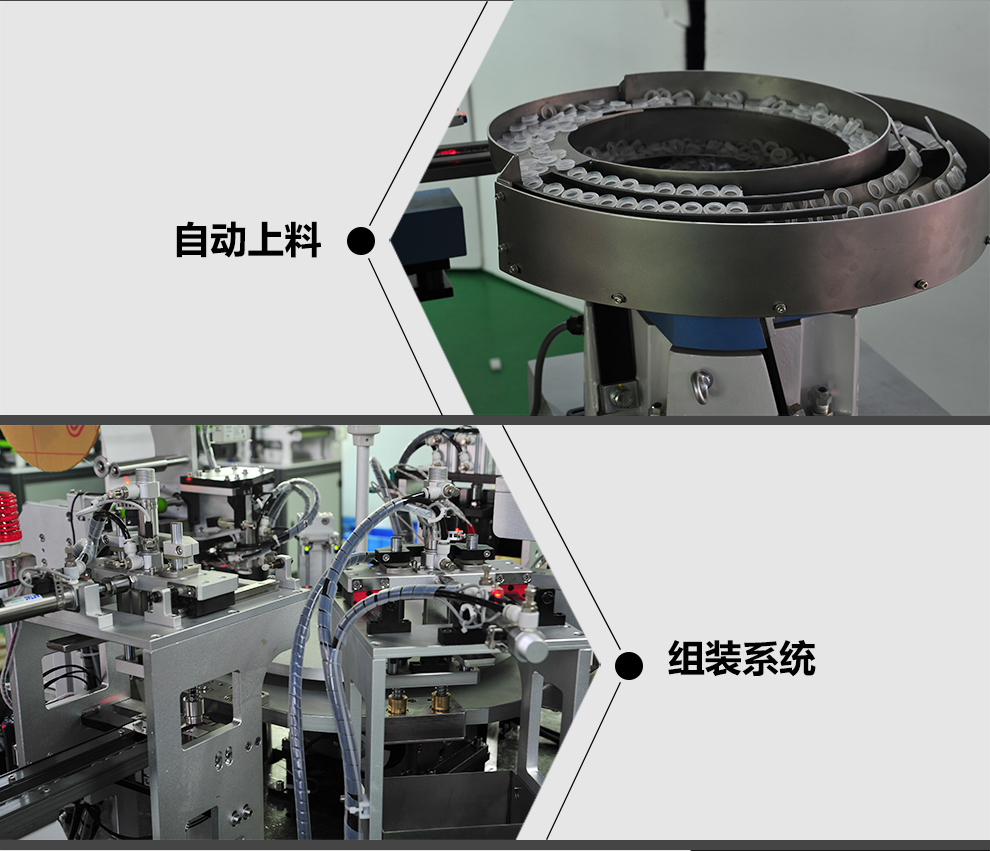 精密輸液器的滴頭過濾部分全自動組裝,實現(xiàn)組裝產(chǎn)品的全自動上料、組裝、粘合、檢測、下料、以免手工操作帶來的二次污染。采用各個模塊集成組裝,便于設(shè)備的拆分、維修以及機構(gòu)的單獨運行,與前序機器實現(xiàn)聯(lián)機?